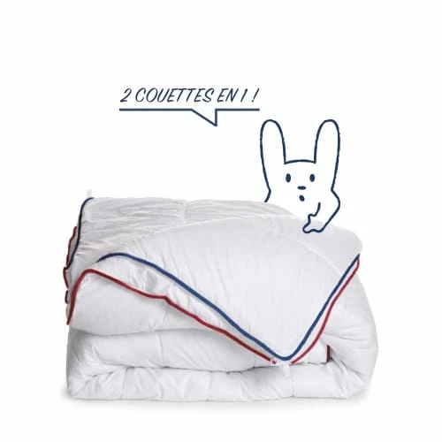 Faites des économies sans faire l’impasse sur le confort ! 100% pratique, 100% confort, la couette 4 saisons assure tout au long de l’année. Son secret ? Une structure intelligente ! Ce modèle futé se compose de deux couettes : une couette légère (180g/m²) pour l’été et une couette tempérée (230g/m²), pour une utilisation à la mi-saison. Et en hiver, il suffit de les assembler grâce à un système simple et efficace de lien. Voici une couette bien chaude (410g/m²), dont les performances sont boostées par le vide d’air entre les deux parties, qui retient la chaleur.