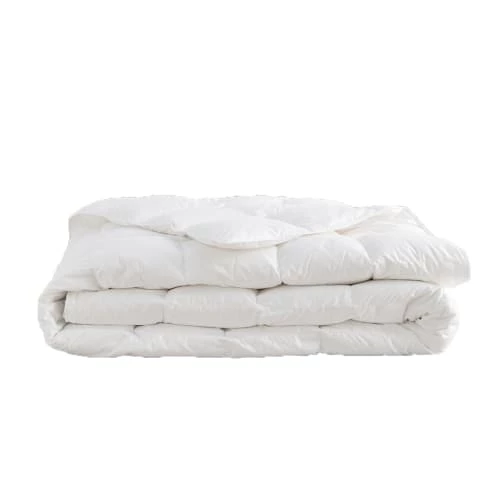 Elle favorise une thermotégulation naturelle, évitant tout excès de transpiration. Le duvet d’oie est une matière noble et rare. Il est sélectionné parmi les meilleurs élevages européens. L’enveloppe haut de gamme en satin de coton bénéficie d’un tissage avec une densité de 150 fils/cm² pour une douceur exceptionnelle. Elle est relevée par un élégant passepoil en satin blanc.