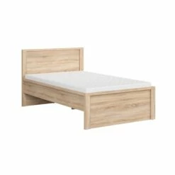 Lit 120×200 tête de lit haut Soren Bois Fabrication Européenne – Collection : Soren – Couleur : Bois façon chêne Sonoma – Matériaux : Panneaux agglomérés stratifiés (résistant aux rayures) – Caractéristiques : Sommier – Vendu séparément Tiroir de lit compatible – Vendu séparément, sans matelas – Poids et dimensions : 58 kg – 128 x 208 x 100 – 50 cm – Produit livré, à monter – Produit garanti 12 Mois.