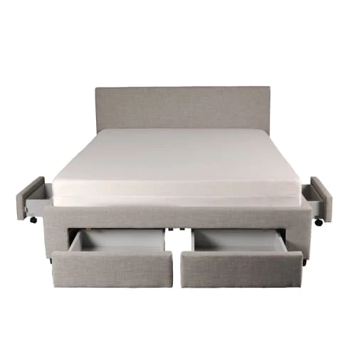 Lit 140×190 sommier inclus et 4 tiroirs Côme Girs clair MDF / Mousse / Tissu – Sommier 2 x 12 lattes en peuplier – Lit adulte gris – Sommier et tête de lit inclus – 4 tiroirs de rangement montés sur roulettes – Poids net : 57.5 kg – Lit adulte : 150 x 202 x 34 – 84.5 cm – Dimensions tiroir de rangement : 47 x 47 x 11 cm – Lit adulte livré avec sommier, sans matelas, à monter, avec notice incluse. – Produit garanti 24 Mois.