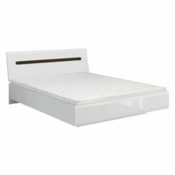 Lit 160×200 Darrel Blanc laqué et Bois Fabrication Européenne – Collection : Darrel – Couleur : Blanc laqué – Détail façon bois Wengé foncé – Matériaux : Panneaux MDF et de particules – Caractéristiques : Poids maximum conseillé : 200 kg – Compatible avec un sommier à cadre ou à fagot – Sommier non inclus – Matelas non inclus – Poids et dimensions : 47 kg – Lit : 214 x 165 x 35-86 cm – Couchage : 160 x 200 cm – Produit livré, à monter – Produit garanti 12 Mois.