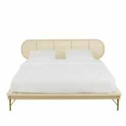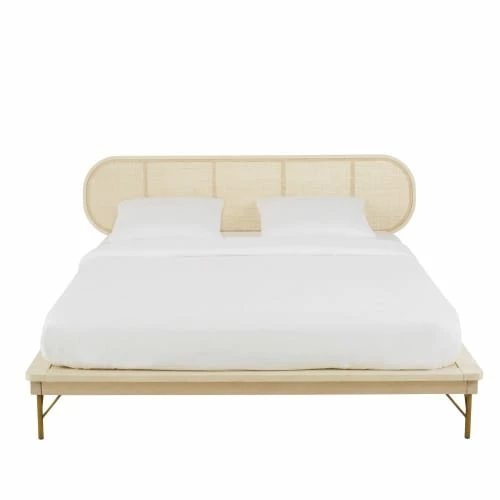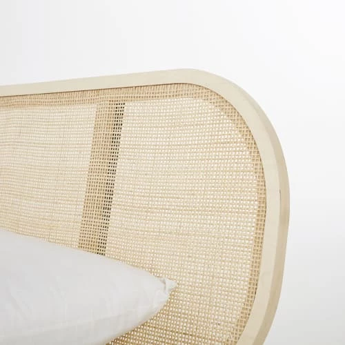 Tête de lit : pin massif et rotin tressé, vernis acrylique mat