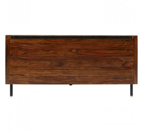 La gamme Ravello s’inscrit dans un style contemporain avec son bois massif de Sheesham plein de caractère associé à un piétement en acier poudré. Ses lignes minimalistes indémodables en font une collection qui traverse le temps et les modes. Elle vous propose différents meubles pour votre pièce à vivre ainsi que votre chambre. Livré démonté, sans sommier ni matelas. Disponible en : – 160x200cm : 92 x 206 x 166 cm ; 52 kg – 180x200cm : 92 x 206 x 186 cm ; 60 kg Entretien : Dépoussiérez régulièrement le meuble avec un chiffon propre, doux et non pelucheux. Pensez à changer régulièrement de chiffon car des tissus sales peuvent rayer la surface du meuble. Vous pouvez en complément utiliser un vernis transparent pour meuble lorsque le bois commence à perdre son éclat.