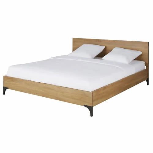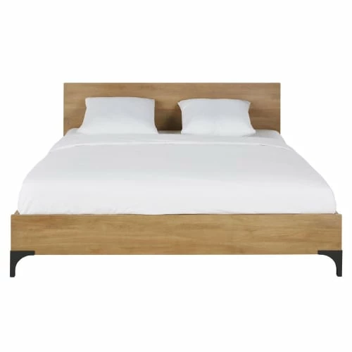 Tête de lit, piètement et structure : manguier massif, finition teinte claire