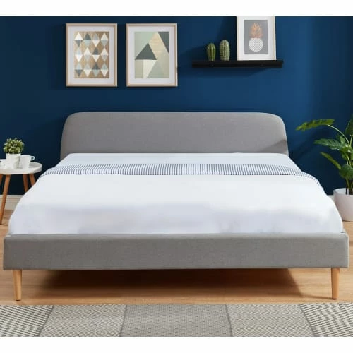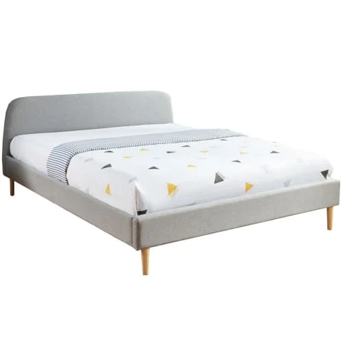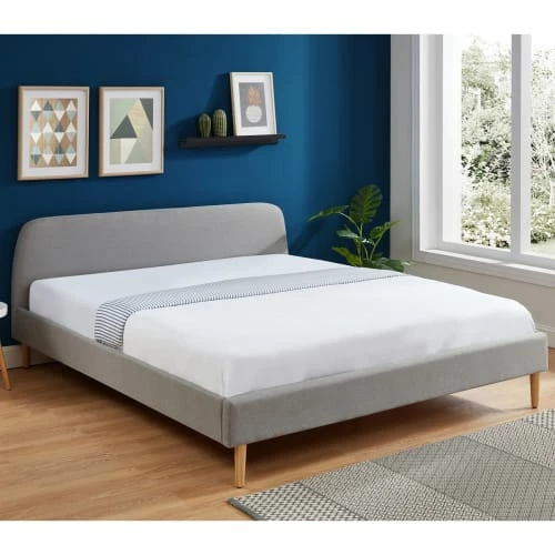 – Style scandinave – Lit adulte – 2 places – Sommier inclus 36 lattes – Tête de lit arrondie – Rembourrage mousse haute densité – Revêtement 100 % tissu – Couleur : gris clair – Structure en bois contreplaqué – Piètement droit – Dimensions : 190 x 81 x 215 cm – Garantie 2 ans – Lattes rangées dans la tête de lit lors de la livraison