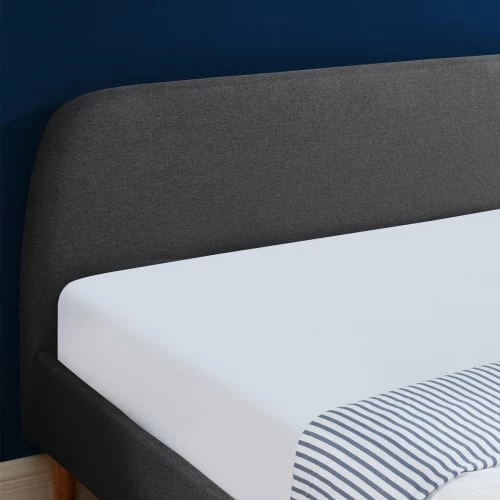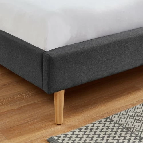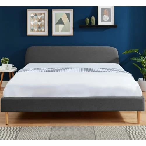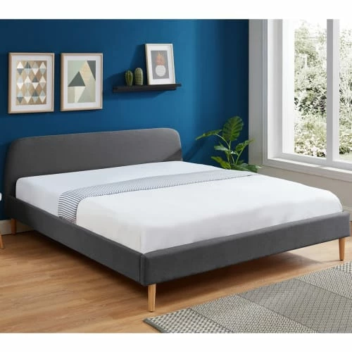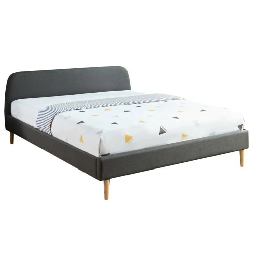 – Style scandinave – Lit adulte – 2 places – Sommier inclus 36 lattes – Tête de lit arrondie – Rembourrage mousse haute densité – Revêtement 100 % tissu – Couleur : gris foncé – Structure en bois contreplaqué – Piètement droit – Dimensions : 190 x 81 x 215 cm – Garantie 2 ans – Lattes rangées dans la tête de lit lors de la livraison