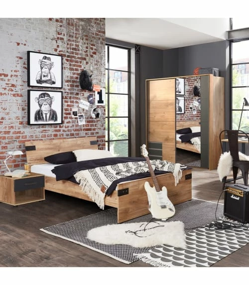 matière : Panneaux de particules agglomérées décor chêne poutre et rechampis graphite