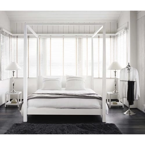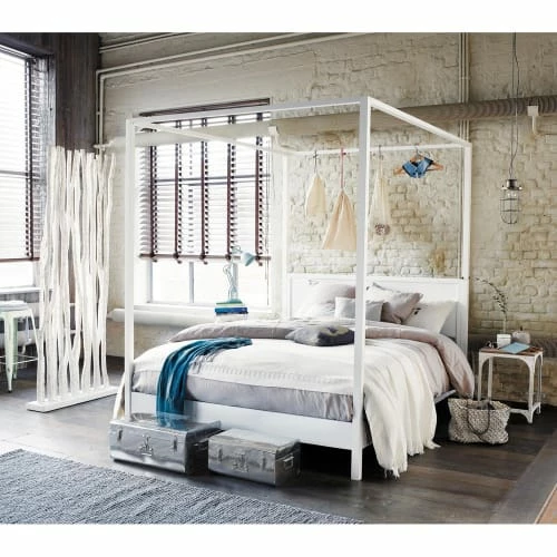Par ses lignes sobres et son design classique, ce lit blanc cassé amènera chic et raffinement à votre chambre.