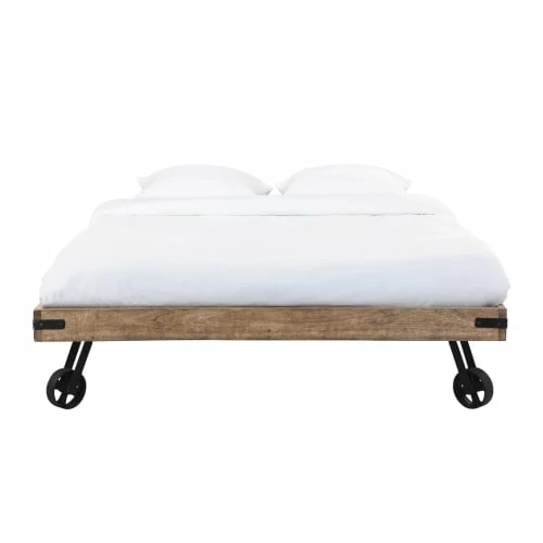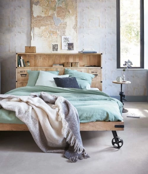 Conçu en bois de manguier massif, le lit à roulettes 140×190 MANUFACTURE vous séduira par son design brut et moderne. Prévu pour un couchage 140, ce lit en bois et métal s’associera parfaitement à une parure de lit colorée ou plus sobre, selon l’effet souhaité. Notre conseil: optez pour un sommier à lattes. Pratique avec ses rangements intégrés, la tête de lit MANUFACTURE s’associera parfaitement à ce lit 140.