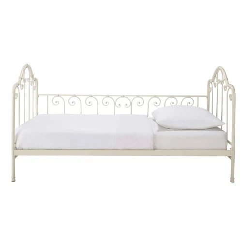 Votre petite fille rêve d’un lit de princesse ? Exaucez ses vœux avec ce grand lit en métal à l’esprit romantique. Charmant avec ses volutes, ce lit en métal est prévu pour un couchage de 90 cm.</p>