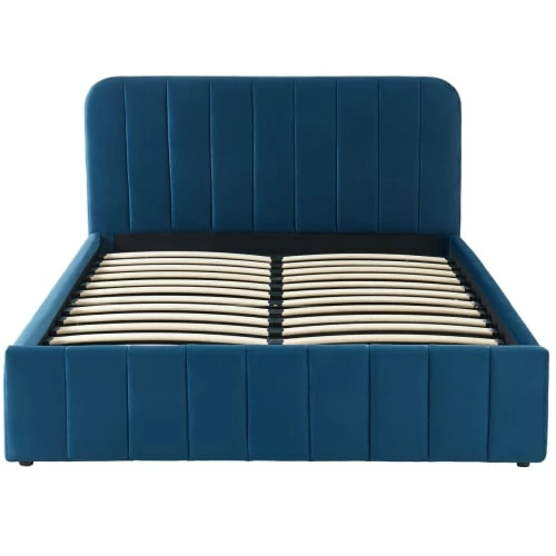 – Lit coffre AVA avec tête de lit en velours bleu canard 140×190 – Tête de lit matelassée – Revêtement : velours – Couleur : bleu canard – Sommier à lattes inclus – 24 lattes – Structure en bois & contreplaqué – Dimension de couchage 140×190 cm – Dimensions totales : 203x151x95cm – Garantie 2 ans – Fond du coffre en tissu tendu