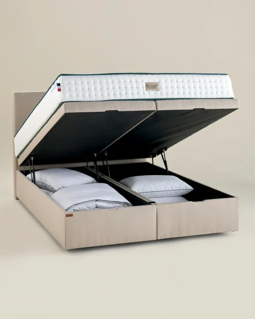 Nous vous proposons un lit coffre premium au design naturel et élégant qui s’adapte parfaitement dans votre intérieur. Sa grande capacité de rangement vous permettra d’optimiser les espaces de votre chambre. Notre lit coffre, robuste et solide grâce à ses 4 vérins hydrauliques arrive déjà monté dans la pièce de votre choix.