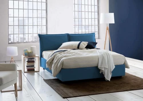 VERONICA FRENCH DOUBLE BED – Lit double français au design moderne Veronica avec tête de lit et conteneur recouvert de tissu rembourré amovible de couleur Bleu, avec matelas à mémoire de cm 140×200 inclus. STRUCTURE – La structure du lit est en fibre de bois surélevée du sol avec des pieds en ABS et est recouverte d’un tissu polyester doux, amovible et lavable en machine à 30° – La tête de lit linéaire combinée en tissu avec surpiqûres apparentes, est solide et résistante – Les lattes en contreplaqué la base est incluse dans la structure – Mécanisme d’ouverture en fer – L’ajout de la boîte de rangement pratique et peu encombrante permet de transformer le lit en un coffre spacieux pour les draps, les oreillers et les couettes. MATELAS INCLUS – Matelas orthopédique déhoussable, anatomique, climatisée avec double portance 140×200 hauteur 21 cm – Structure en mousse polyuréthane pleine h 17 cm, densité 30EP recouverte d’une mousse viscoélastique en Memory Foam h 2 cm, densité 55EP losange en partie haute – Housse en tissu stretch de gr 130 , amovible et lavable en machine à 60° – Rembourrage 100% fibre polytechno, hypoallergénique et anti-acarien des deux côtés – Equipé d’une bande tri space respirante avec zip et poignée en tissu. 100% MADE IN ITALY – La production 100% italienne garantit fiabilité et résistance – L’attention portée aux processus de production, le choix de matières premières de qualité et le souci du détail rendent ce lit solide, confortable et résistant dans le temps. MESURES ET OUVERTURE – Dimensions du lit : Longueur 215 x Largeur 155 x Hauteur 95 cm (hauteur nette depuis le sol :.