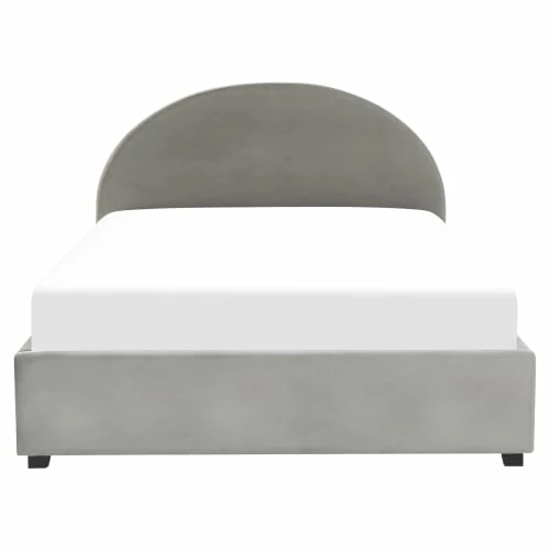 Les formes courbes et les tissus à la texture riche sont les caractéristiques des meubles parfaits pour une décoration sur le thème rétro dans votre chambre à coucher. Aucun autre lit ne conviendra mieux à ce style d’intérieur que ce lit dans une teinte gris clair. Tapissé en velours, il n’est pas seulement agréable au toucher, il est aussi facile d’entretien et durable et grâce à lui, le lit durera de nombreuses années. Avec sa tête de lit arrondie, il ajoutera une touche invitante à une chambre à coucher. Le lit est livré avec un espace de rangement, qui vous permettra de garder vos coussins supplémentaires et votre literie à portée de main.