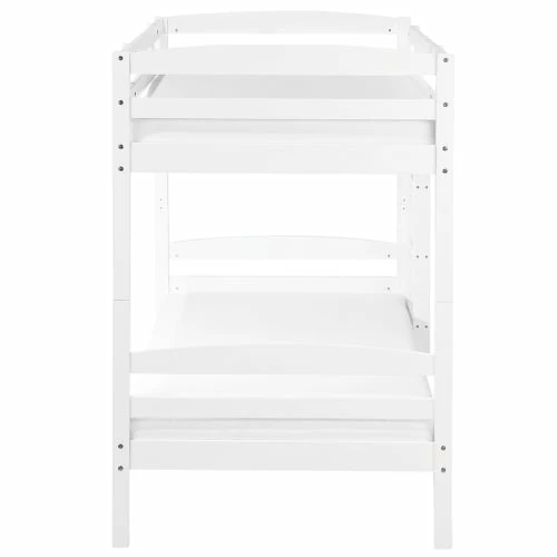 Lit superposé ultra-fonctionnel, lieu de couchage amusant et confortable pour la chambre des enfants ou des adolescents. La construction robuste en bois de pin avec des rails à lattes étroites assure une sécurité maximale tandis que l’échelle est facile à monter. Avec son cadre au design classique peint en blanc, le lit s’intègre parfaitement à tout style d’intérieur moderne, minimaliste ou côtier. La hauteur recommandée pour le matelas du lit supérieur est inférieure à 13 cm afin que les rails assurent une sécurité maximale.