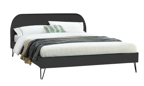 Ajoutez une touche de dĂ©coration Ă votre chambre avec ce joli lit aux lignes arrondies ! Ses finitions en velours noir et ses pieds Ă©pingles couleur noir le rende trĂšs tendance.NĂ© aprĂšs guerre et dans un objectif d’Ă©conomie, le piĂ©tement en Ă©pingle permet de limiter la quantitĂ© de matĂ©riau tout en garantissant une parfaite soliditĂ©. VĂ©ritable icĂŽne du style Mid-Century, ce type de piĂ©tement revient au top de la tendance avec l’engouement du vintage !