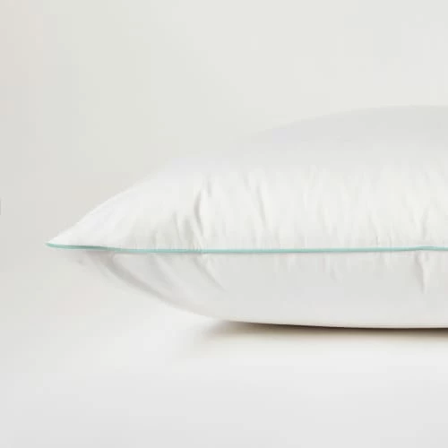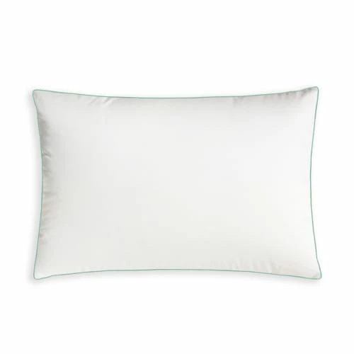 Une finition passepoil vert menthe vient sublimer l’oreiller.