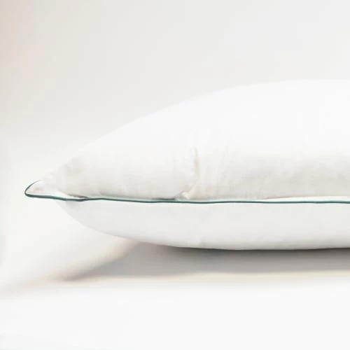 Une finition passepoil vert forêt vient sublimer l’oreiller.