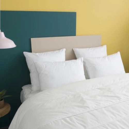 Composition du tissu : 100% coton naturel – Composition du garnissage : 100% fibre polyester creuse siliconĂ©e recyclĂ©e sensation duvet SuprelleÂź micro ecoÂČ