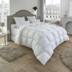 L’enveloppe d’exception en percale 100% coton de densité 91 fils/cm² dispose d’une finition plate-bande d’épaisseur 2,5 cm, et d’un double passepoil ombre.