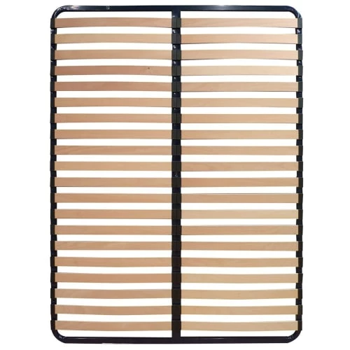 Sommier à lattes120 x 190 cm, composé de 2x 20 lattes en bouleau multiplis largeur 53 mm , épaisseur 8 mm. Structure tube métal carré,laqué epoxy coloris bleu nuit. Coins arrondis.Poids maximum conseillé : 100kg / place. Soit 200kg pour ce modèle. Au-delà, il est fortement recommandé de coupler le sommier à un pied central.Dimensions: 118x 188x H4cm.