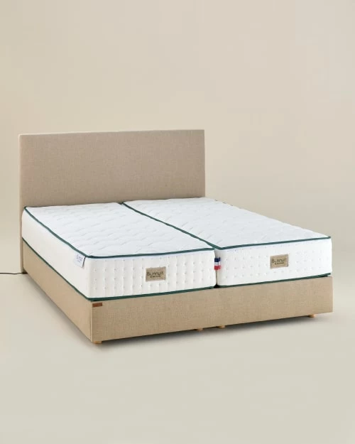 Matelas ferme ou mi-ferme ? Aucun souci, les deux conviennent parfaitement à notre sommier électrique. La technicité haut de gamme de nos ressorts ensachés permet à nos matelas de s’installer sur un sommier électrique puisque ils n’ont pas de cadres laminés ou de cadrage mousse qui ne pourrait convenir au sommier électrique. Attention, tous les matelas ressorts ne peuvent donc pas être posés sur notre sommier.