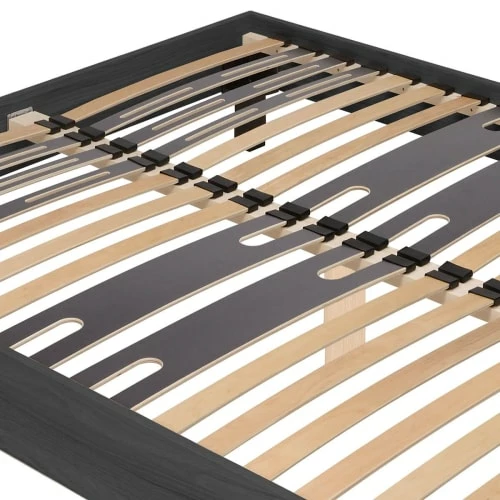 Sommier Démontable 140x190cm Gris CentréFacilKit.Un sommier élégant à monter soi-même, et sans outils ! Disponible en plusieurs coloris, il trouvera aisément sa place dans un grand nombre de chambre. Livré démonté pour passer dans les couloirs étroits.Structure en panneaux de particules, finition déco mélaminé aspect bois cendré. Lattes multiplis en bois largeur 53mm. Lattes doubles renfort bassin en bois largeur 151mm. Lattes simples renfort épaules en bois largeur 53mm. Embouts lattes en polyprolylène. Hauteur encadrement : 19cm. 5 pieds bois inclus.Hauteur totale : 35cm. Hauteur couchage (pied / sommier) : +/- 31cm.Les + produit :Débord d’encadrement pour maintien du matelasSystème de montage sans outilParfait pour des pièces à accès difficileConforme à la norme EN1725Dimensions :144 x 196 x H35 cm