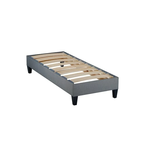 matière : Lattes en bois multiplis – Caisse en bois MDF recouvert de coutil d’ameublement gris clair – Masses d’angles en hêtre (cours et longs pans en bois PEFC issu de forêts gérées durablement).