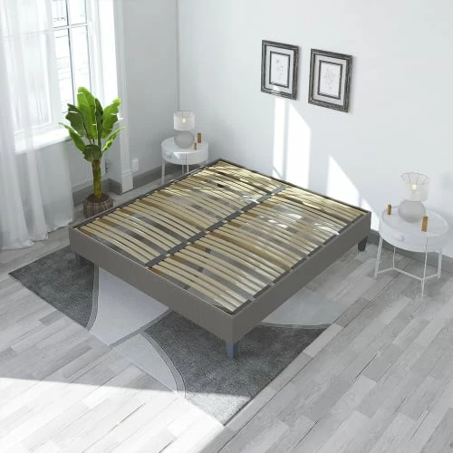 Finitions soignées : Revêtement qui s’accorde avec tous types d’intérieurs et pieds de forme pyramidale assortis au sommier.
