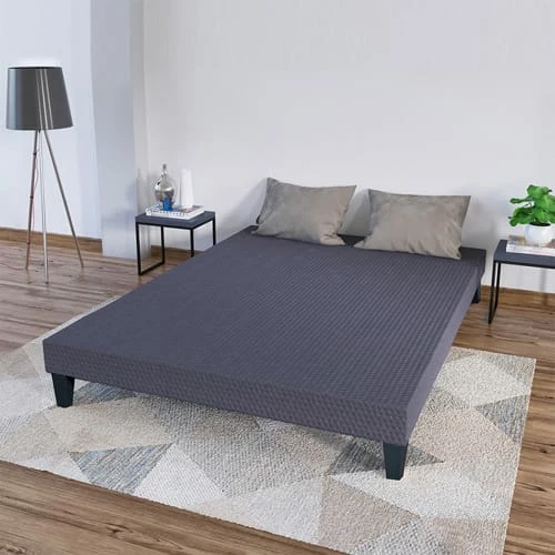 Finitions soignées : Revêtement qui s’accorde avec tous types d’intérieurs et pieds de forme pyramidale assortis au sommier.